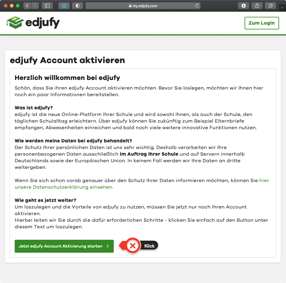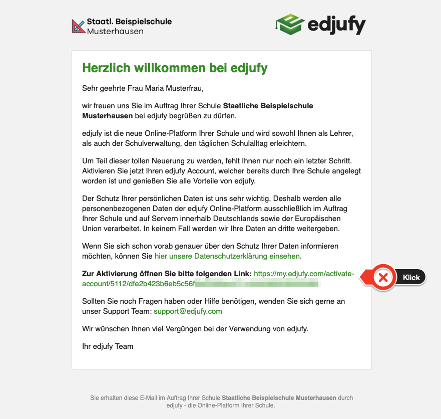 As a Legal Guardian or Teacher, you will receive an invitation to the edjufy online platform from your school via email. This email contains your personal activation link for your edjufy account. In case you have not yet received an email invitation to edjufy, please check your email inbox and contact your class teacher or your designated edjufy system administrator.