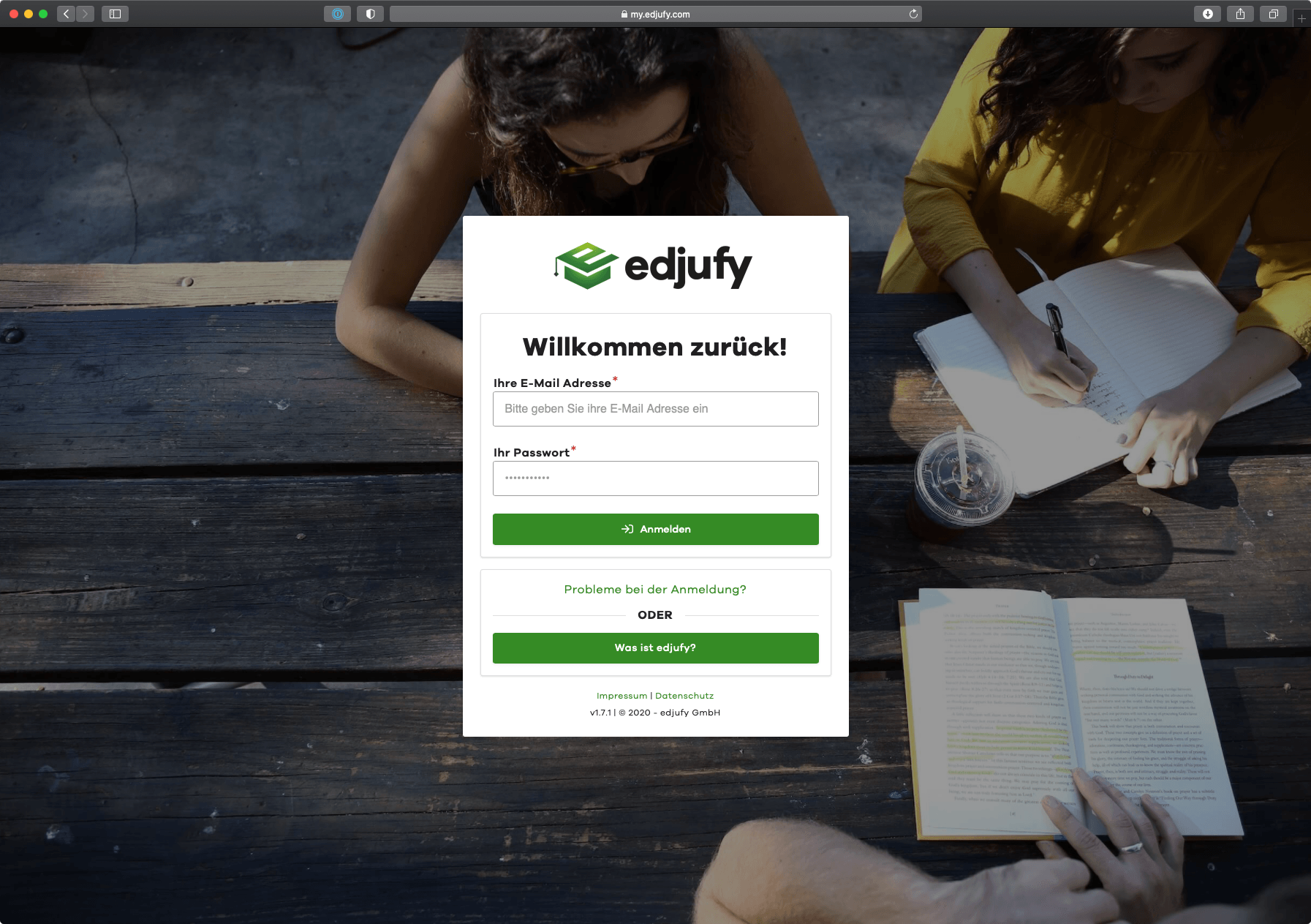 After you have successfully activated your edjufy account, you can now log in to edjufy with your email address and your personal password. To log in, please open the following URL in your browser: https://my.edjufy.com
