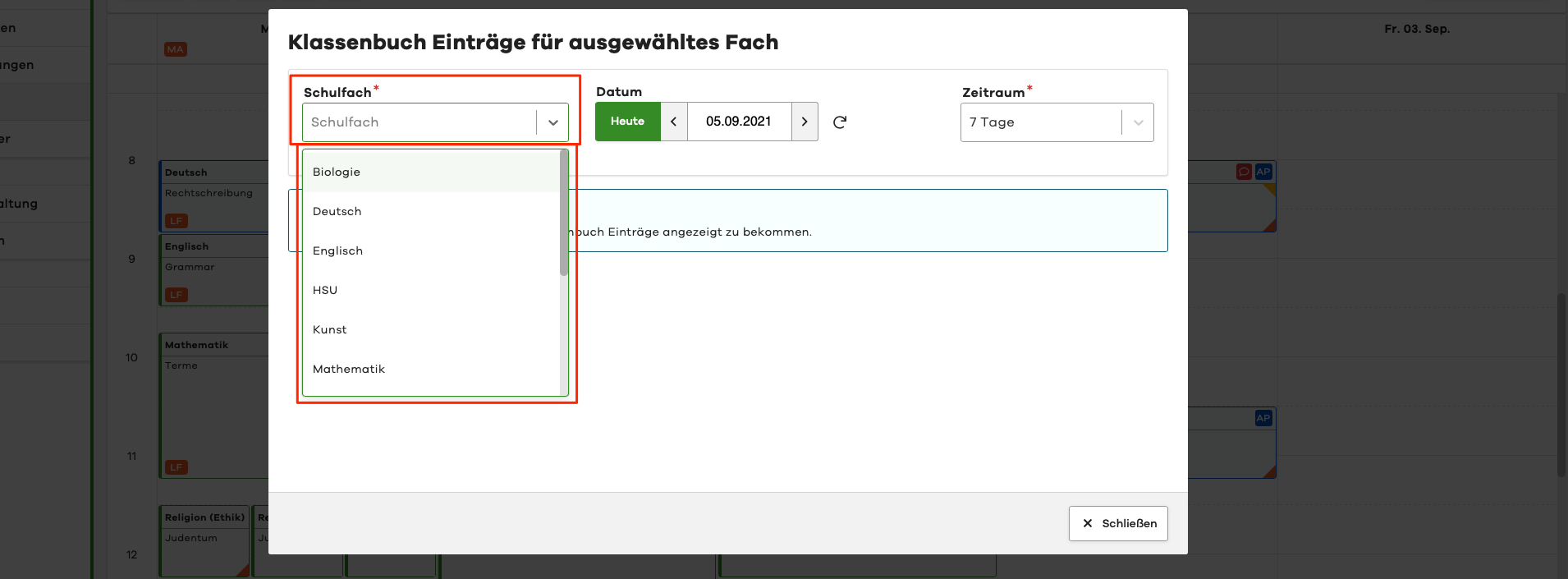 To get an overview of the recent lessons held by a teacher or a specific subject in a class, we have added the following functions for you: