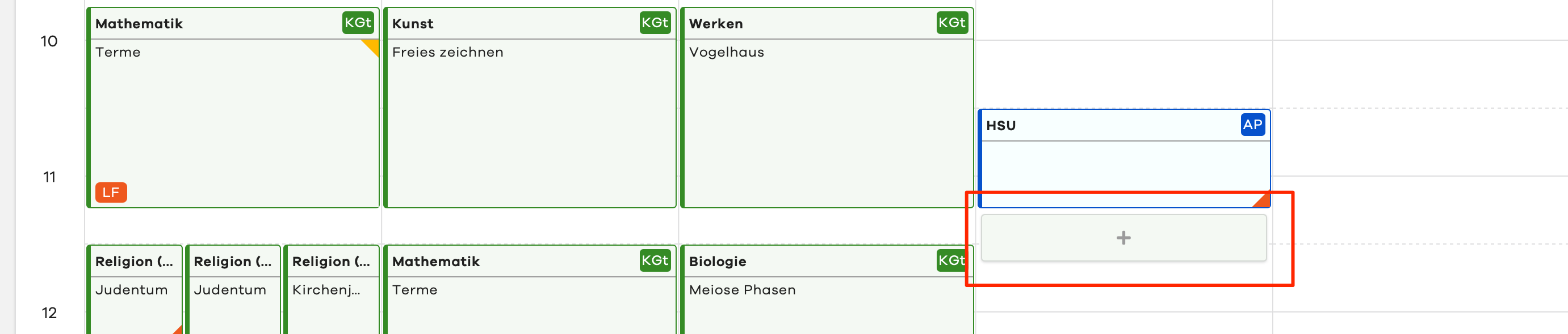 The much more convenient option is to create an entry via the button within the day column. Here, for example, the date from the column in which you want to create the entry is automatically filled in.