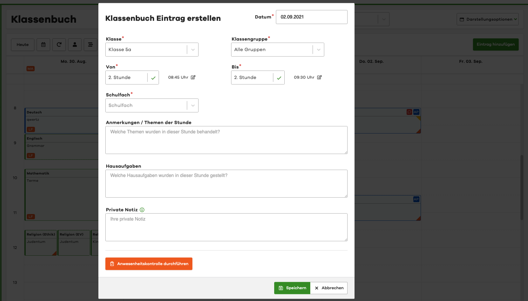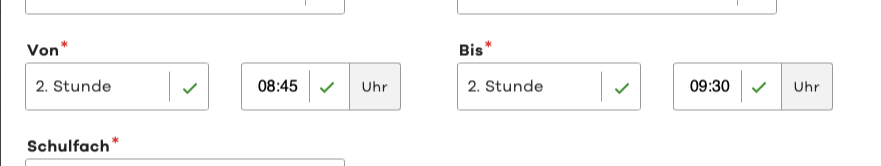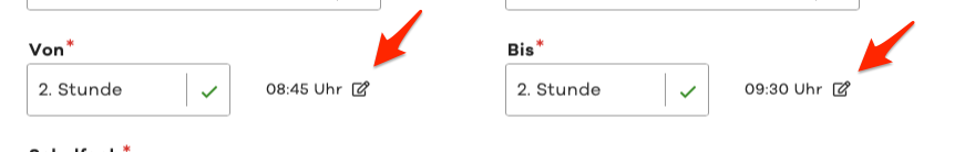 Based on the master timetable stored in the system, the system also suggests the current lesson period. You can of course edit this suggestion. Deviations from the master timetable - e.g., in the case of shortened periods before holidays - are also taken into account, provided they have been set up by your school's edjufy administrator.