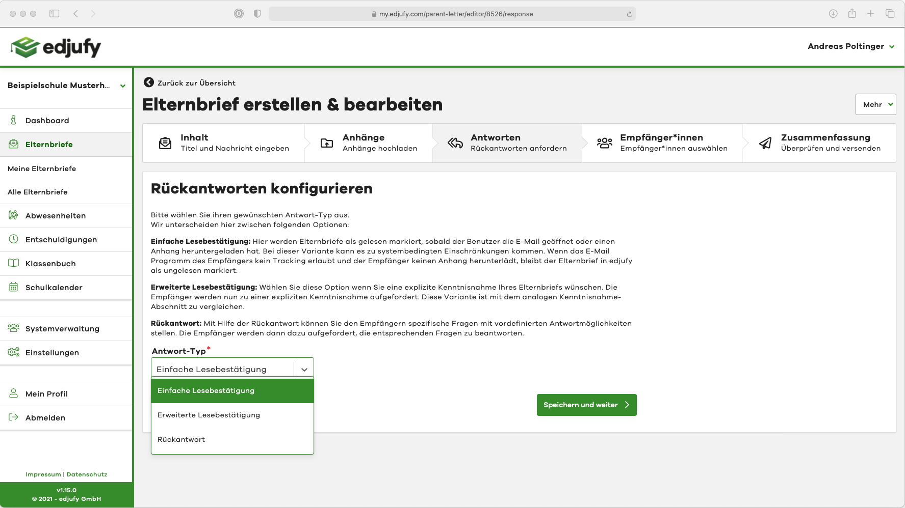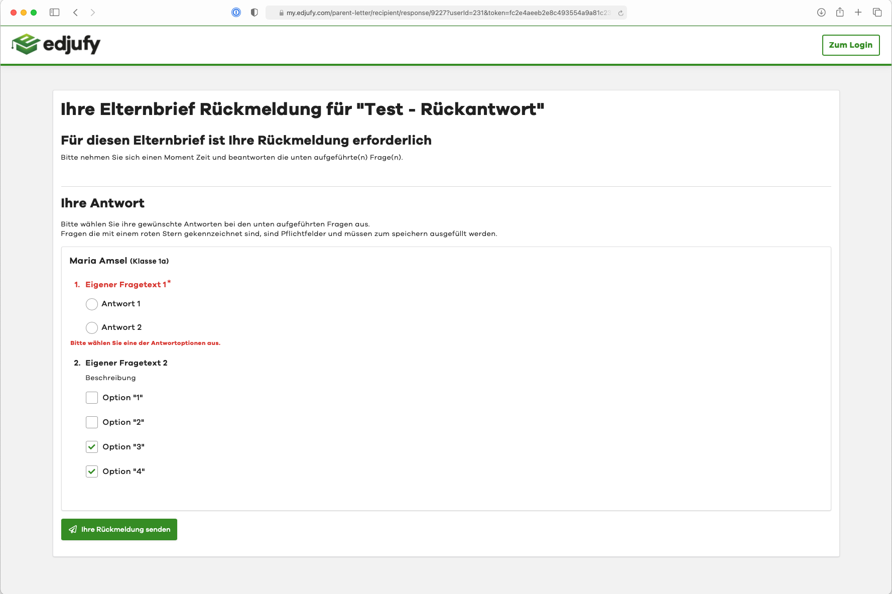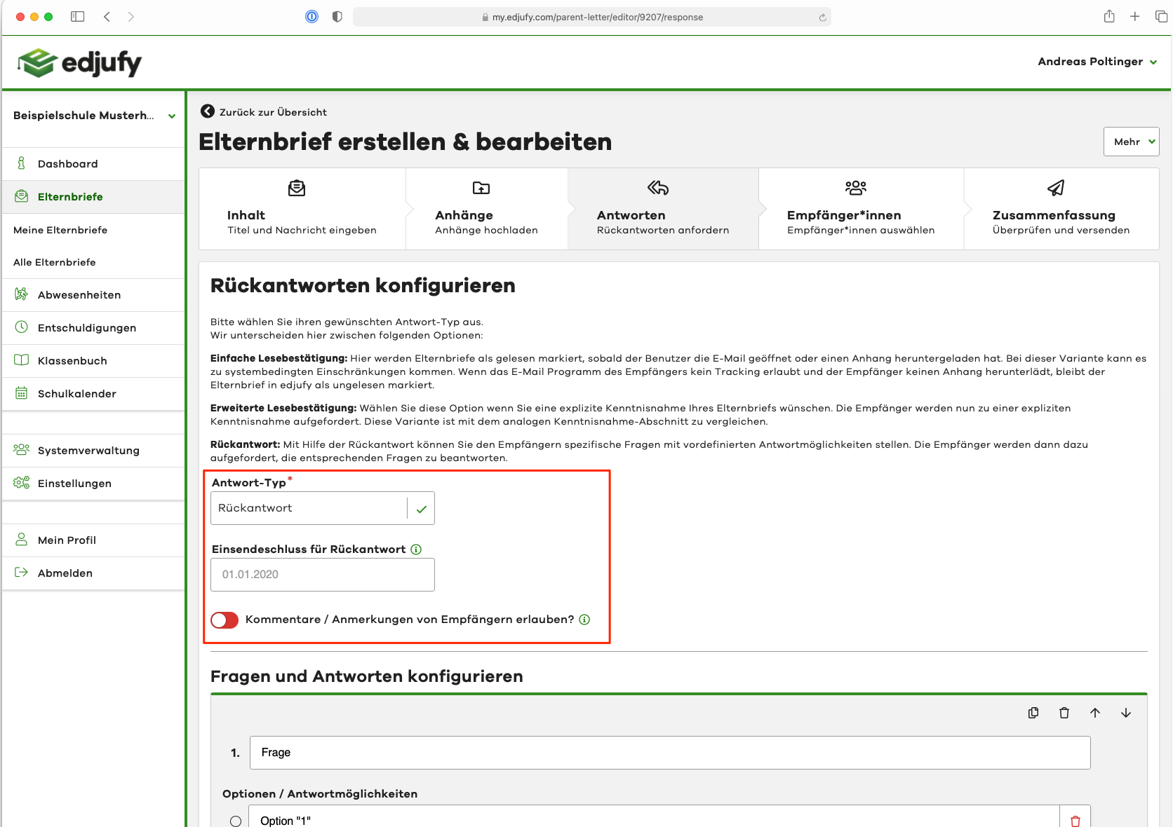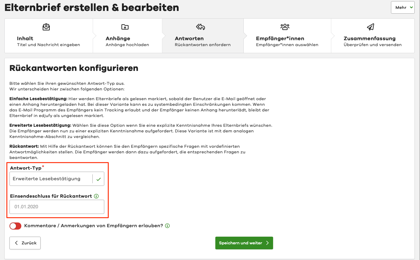 edjufy provides you with three response options in the third step of creating a parent letter, which we would like to explain in more detail in this section.