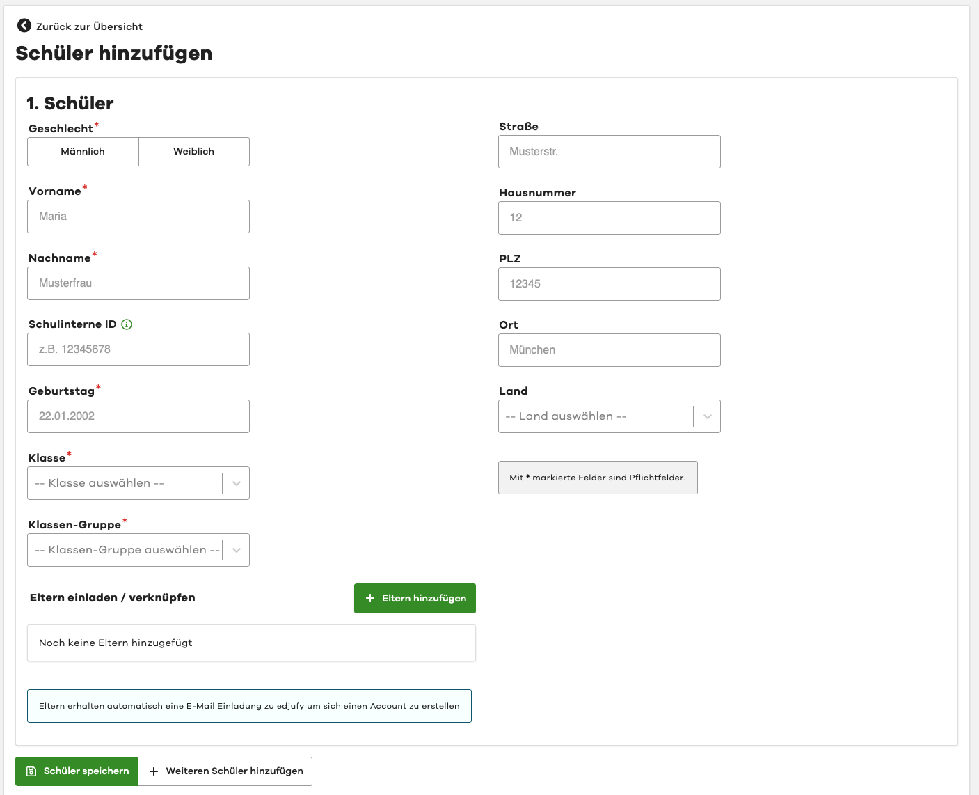 With the + Add Another Pupil button, you can add another pupil, and with Save Pupil, you save your previous entries.