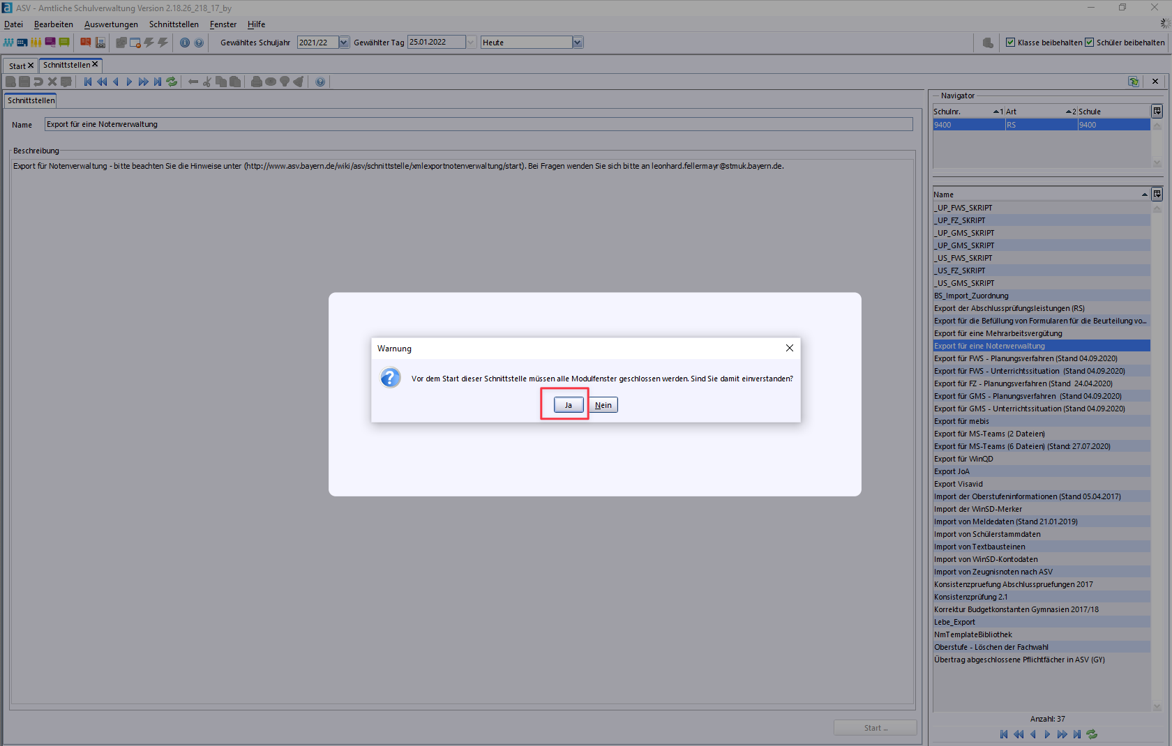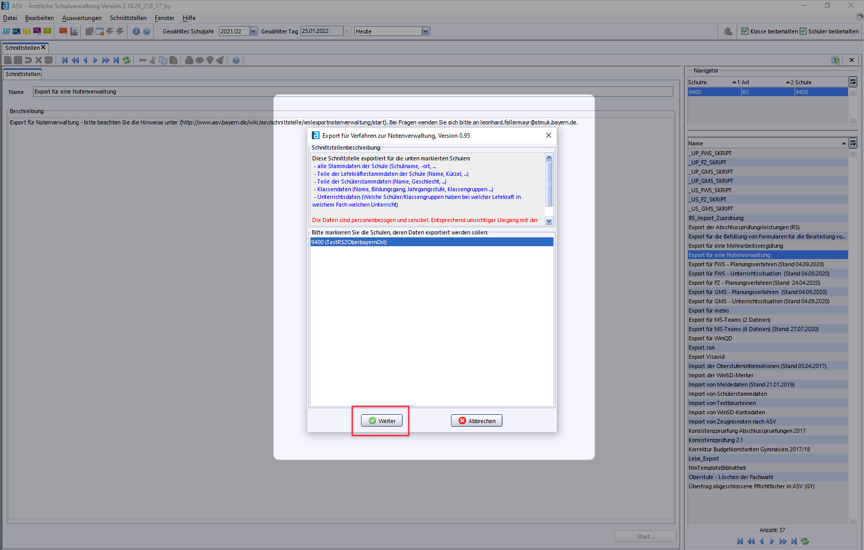 Start ASV Interface "Export for a Grade Management System"