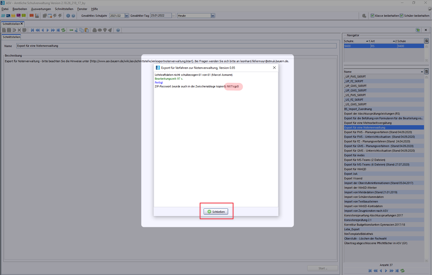 The exported ZIP archive is password protected. The ASV displays this password at the end of the export. Additionally, the password is saved to your computer's "clipboard" so you can retrieve it with CTRL + V.