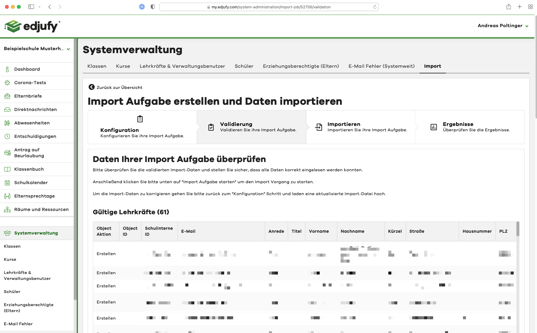 edjufy then performs a validation and provides a summary of the import. Please briefly review this summary and then start the import using the Start Import Task button.
